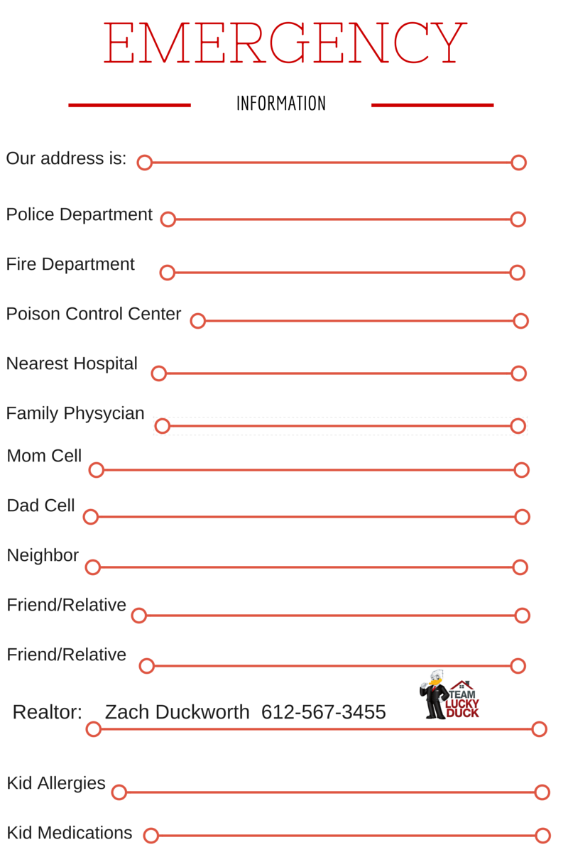Have some peace of mind by being more prepared in case an emergency should happen in your home.Hang this list on the refrigerator, in the mud room, or any other easily accessible area of your home. And of course, when you need to move into a new home, your realtor’s contact information will be readily available as well.